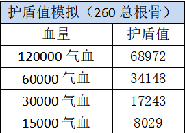护盾值是动态的,与自身当前血量有关。以总根骨260点(先天+后天)模拟护盾变化,可以看出护盾值大致是随血量减少呈线性衰减的,所以在对局末期相对乏力。