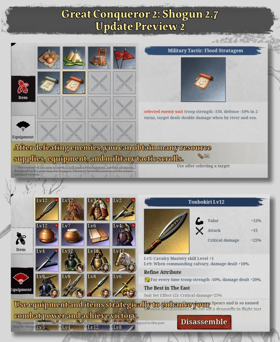 (个人猜测将领一开始进入应该是不能带装备的。后击败敌人掉落就可以装上了,然后用一些物品来加强装备和将领)