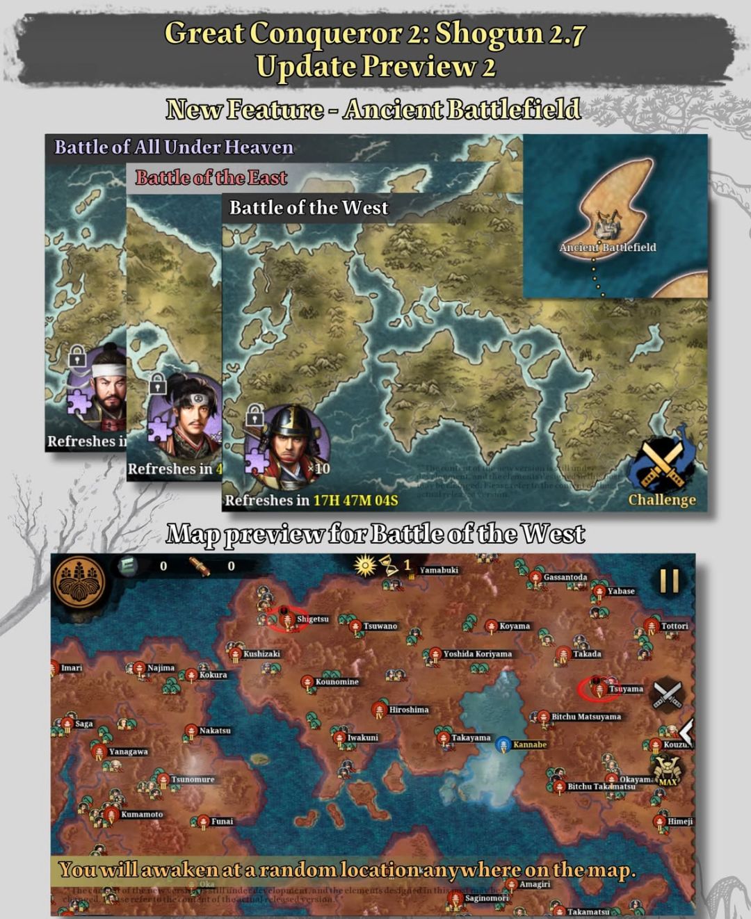 目前古战场有三张不同的地图供玩家挑战:西方之战、东方之战、天下之战。