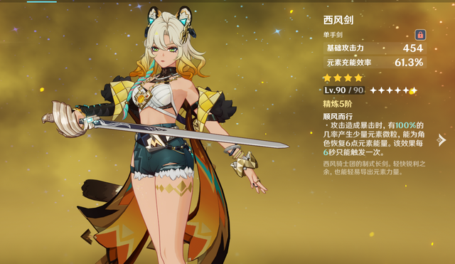 比如,提升防御力的锻造武器息燧之笛、或者辰砂之纺锤都行,或者用提升充能的祭礼剑、西风剑,也是不错的选择,这也是希诺宁养成成本低的又一表现。