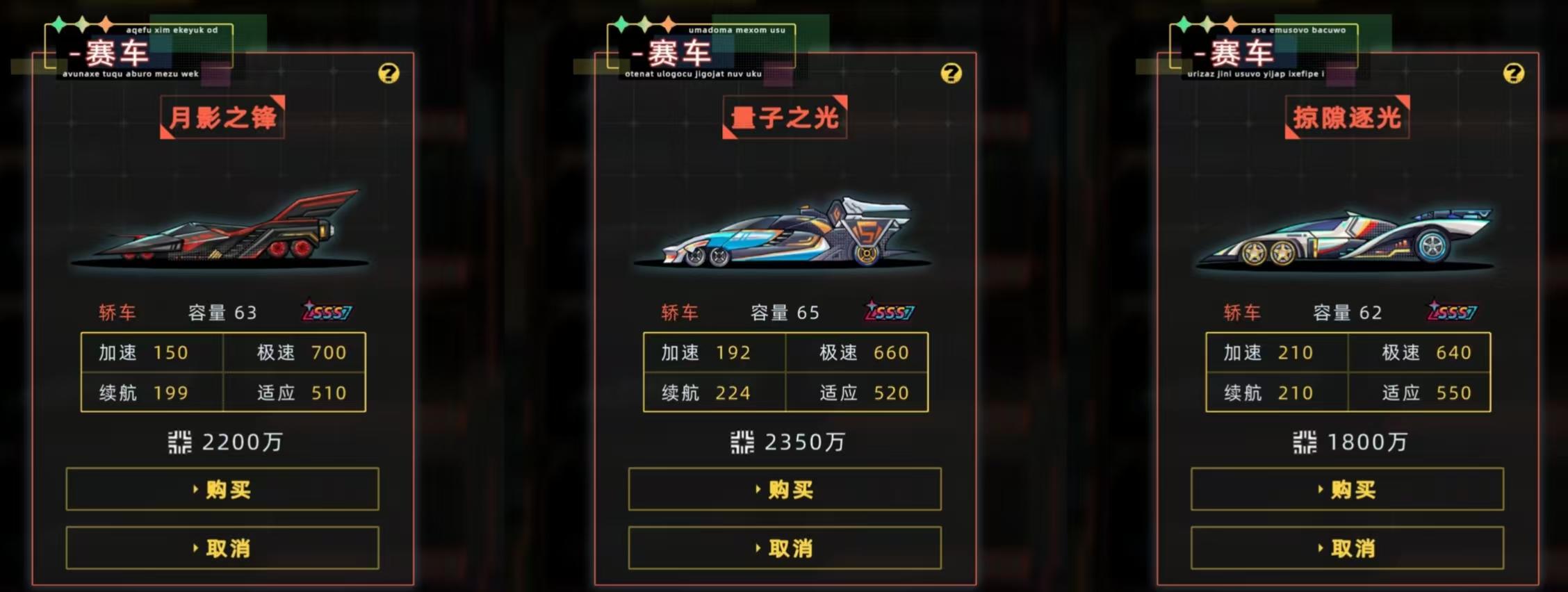 4、一代开局推荐车队升到3级后,存够钱换购SSS车。老档随意。