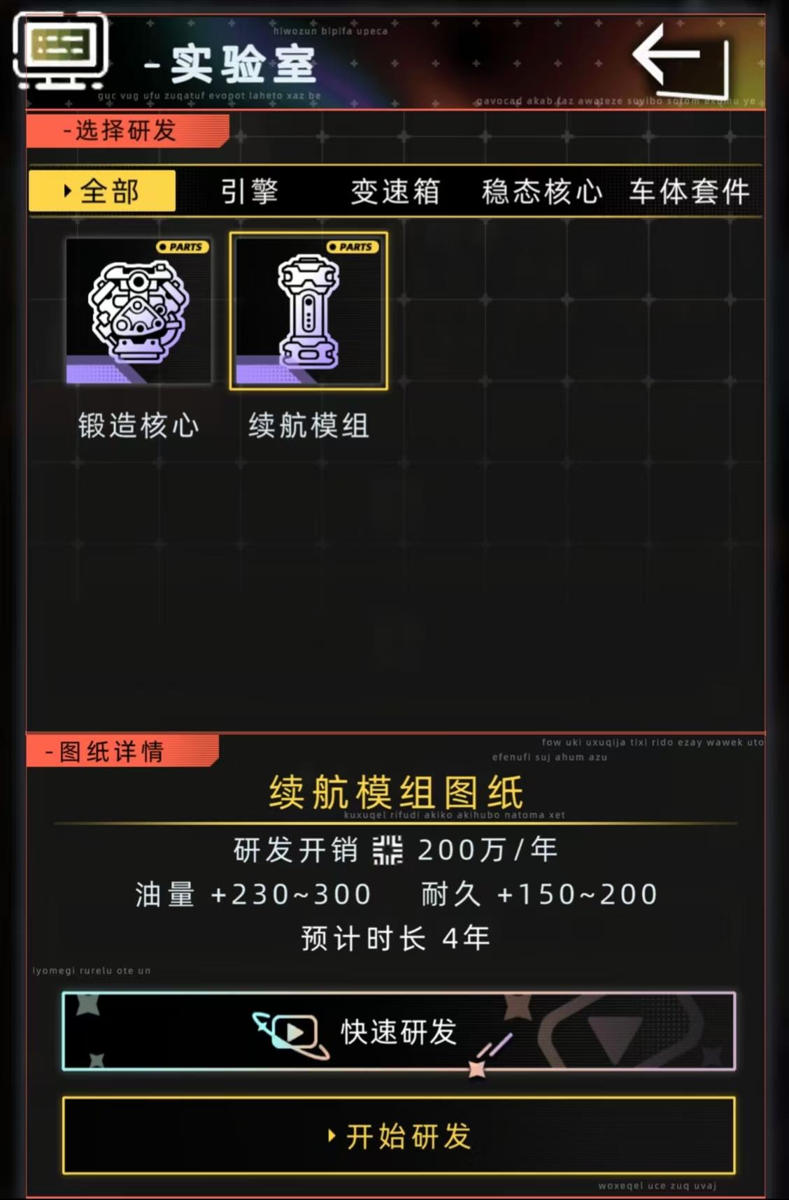 注:优先制作“稳态核心”提高油量、耐久,其次“引擎”。广告可6年看一次。