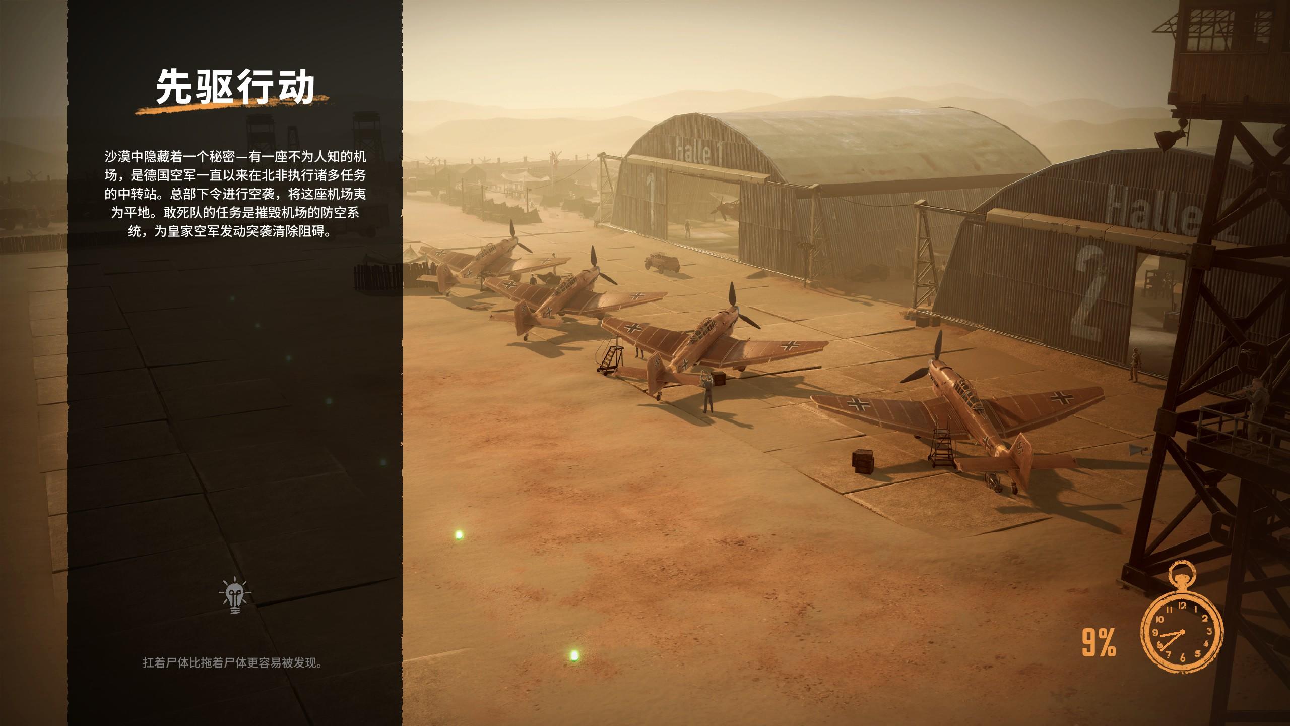 游戏本体共有14个关卡,有新兵、士兵、老兵三个难度,每个关卡的地图都很大,而且敌人的数量也是逐渐增多的,前八关难度差不多,后六关难度直线上升。地图上的敌人分成一小块一小块的,方便我们逐步击破,有点解密游戏里一个小节点的感觉,不过一些地方会有警报器,我们一定不能让警报器响起来,否则就会被大量的敌人围攻。有时候前方的道路会被巡逻的敌人封锁,我们可以换个方向绕道走,比如非常高的断层山脉可以派贝雷帽攀登,有水面的地方可以派水鬼前去。利用各种地形将敌人刺杀。