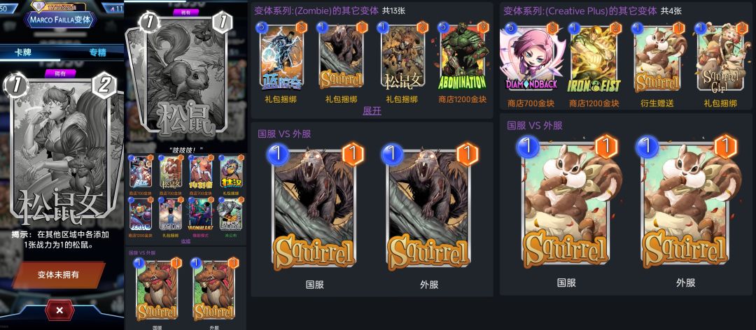 图4️⃣松鼠女-Zombie、MarcoFailla(国服没有)、CreativePlus、不知名变体(评论区补充图)