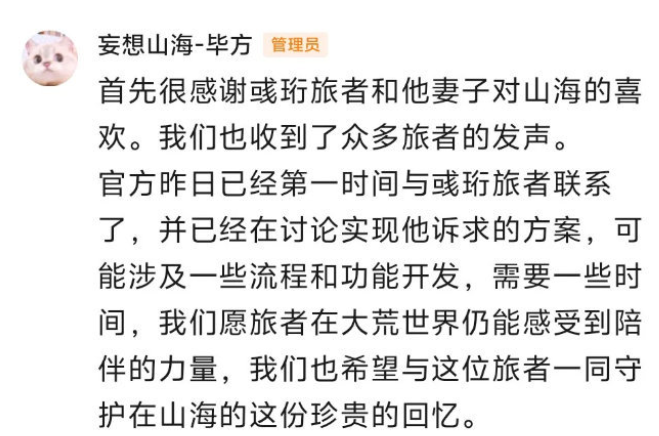 事件发酵后,《妄想山海》官方迅速回应,称已与玩家取得联系并推进解决方案。最终在客服协助下,妻子的账号成功找回,虚拟房屋也得以完整修复。这则故事触动无数网友,大家纷纷分享自身经历,有人保留逝者微信,有人不舍删除对方游戏角色。网友们感慨,当现实中的痕迹渐淡,虚拟空间反而成为安放思念的温暖角落。