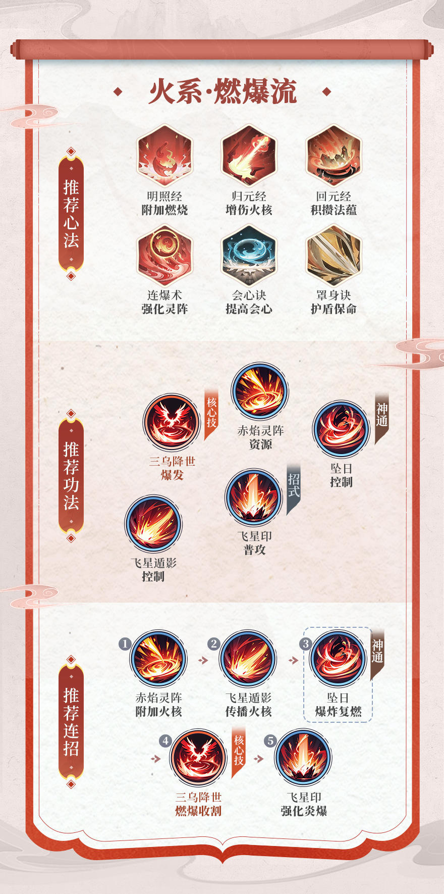 火系 · 燃爆流:爆发猛烈,范围连炸,适合喜欢一击制胜的仙友。