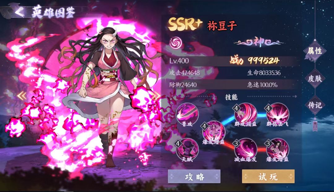 阵容推荐二:祢豆子、珠世、炭治郎、我妻善逸、伊之助