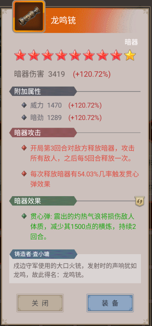 4、新暗器火铳。按照描述,增加本体暗劲并在触发时减低怪的横炼,即使按照波利4怪物2450横炼计算,只要效果触发,怪物横炼为2450-1500,剩950横炼,加上暗器本身提供1289暗劲,那么怎么算都能吃到增伤,但是实际情况和想象差距较大,所以额外的损伤(至多100%)这个说法就很值得推敲了,暗劲大于对方横炼多少时才能增伤100%?这个恐怕只有策划知道了。当然也可以利用外域前期的图怪物横炼较低进行测试。所以个人看法,新暗器看似很强大,实则一般般。现在开了洗髓199,每天要去逍遥林买洗髓材料,加上联盟每天刷八卦等其它日常消耗,黄金需求量巨大,没必要着急冲外域的威望做这个新暗器,大家合理安排每天历练次数。