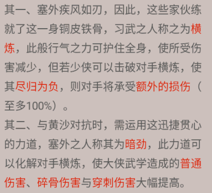 5、暗劲和横炼。个人看法尽量让自己的横炼与怪物暗劲匹配,减少怪的增伤,要不然受到的伤害更多,然后尽量提高本体暗劲,四派争锋还是以暗劲优先。本人暗劲横炼放出,无火铳,仅供参考。