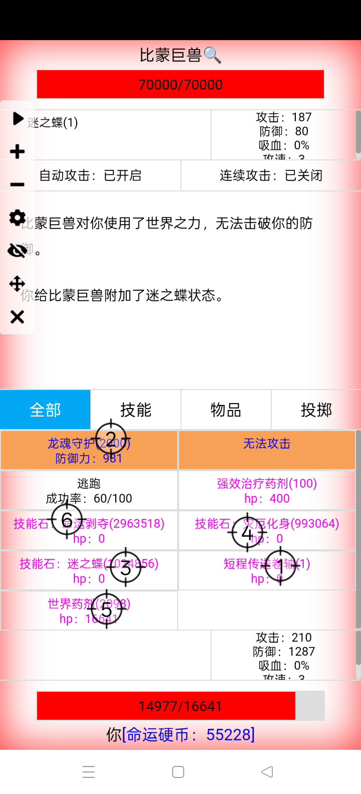 打赢获得8世界之力,净赚6点,连点器设置恰当的话,1秒能刷2只。