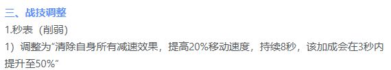 ①:秒表的再次削弱对黛西此类秒表依赖英雄影响不小,一定程度上影响其选用几率和游戏表现。