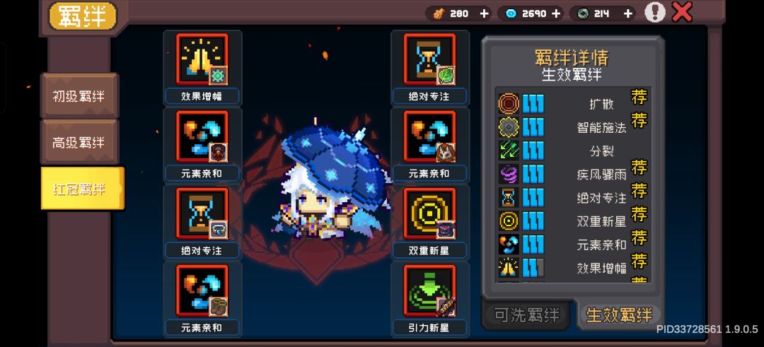 3,智能施法不要洗在武器红冠羁绊上,智能施法给精准弹幕和炸弹狂潮,剑雨·炎换上。
