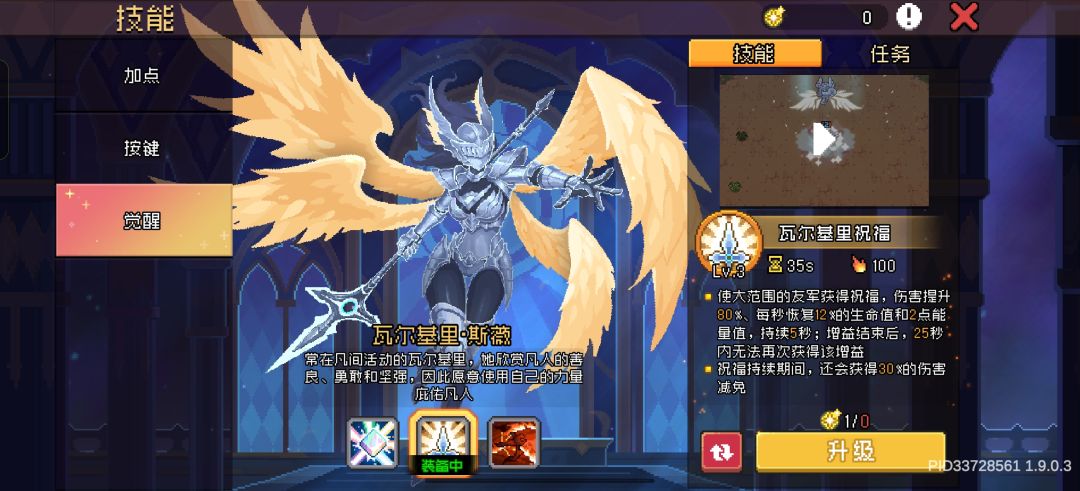 觉醒技能 瓦尔基里祝福,提供增伤与防御