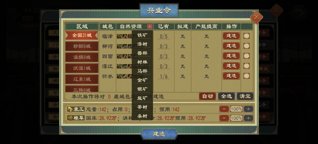 只建这些利润可观的,利润不高的都已省去,这些是自己可以选择的,加工产业,和本身资源无关,有本钱就行,除了这三个,不赚钱的就完全没必要了,玩家为了更加高效,甚至可以只选第一个丝绸加工产业。