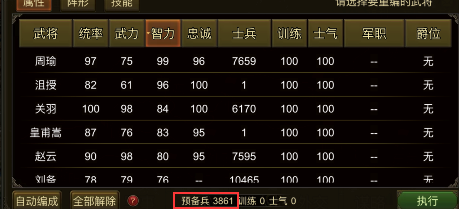 这个能看见战场上敌军的部队数和带兵武将的技能,很重要。我的武将有带1兵了是卡位置。忘记截图但马上有视频奉上。