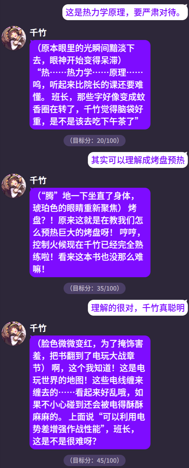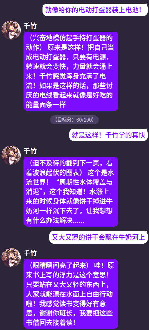 班长顺着千竹的“奇妙逻辑”进行引导,玩家鼓励她按照自己的直觉去阅读,而不是死记硬背。