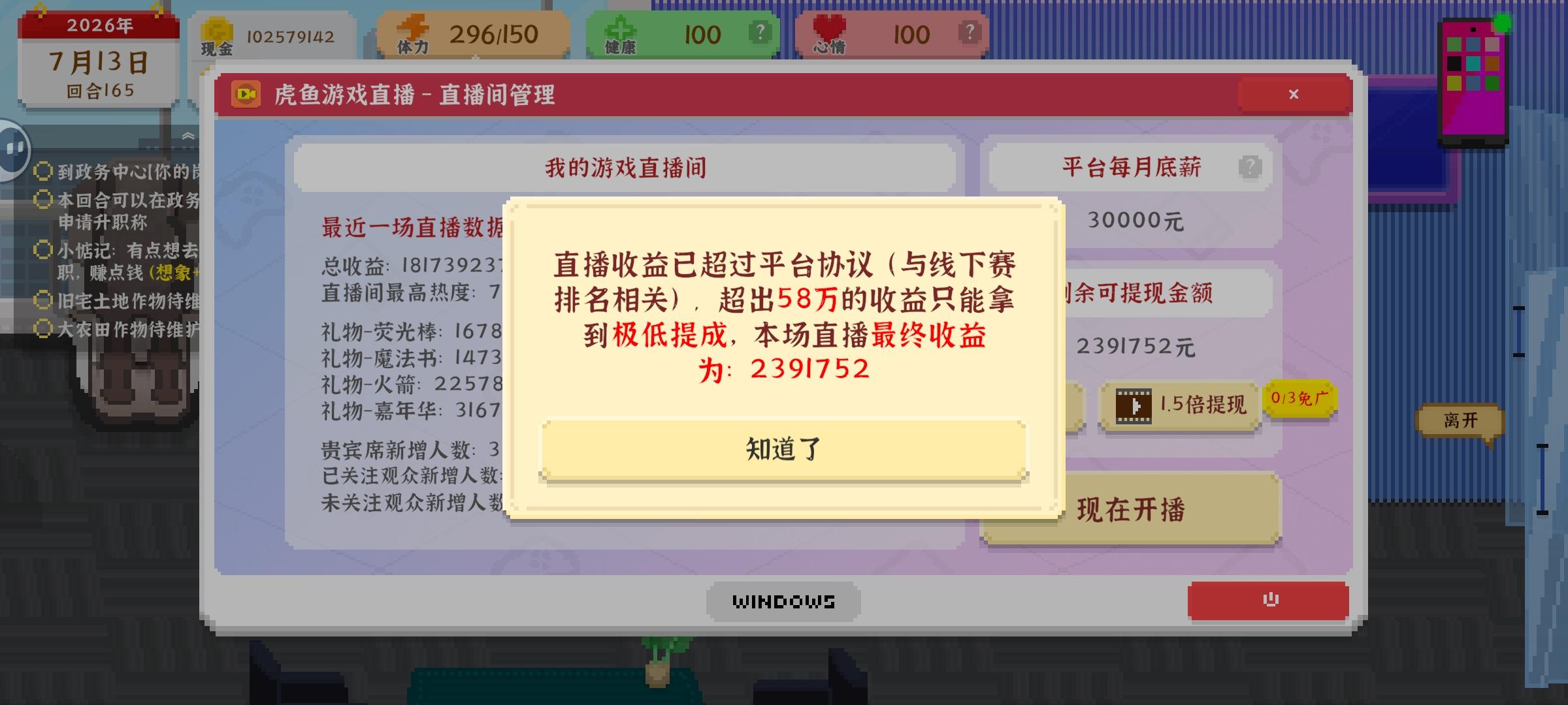 100回合内:完成国一挑战,直播最高上限,至此基本结束,视个人决定继续还是结局(单机游戏没后续辣)