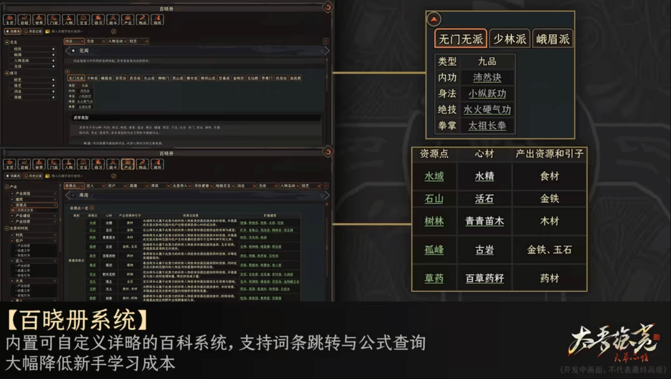 【百晓册系统】:内置可自定义详略的百科系统,支持词条跳转与公式查询,大幅降低新手学习成本;