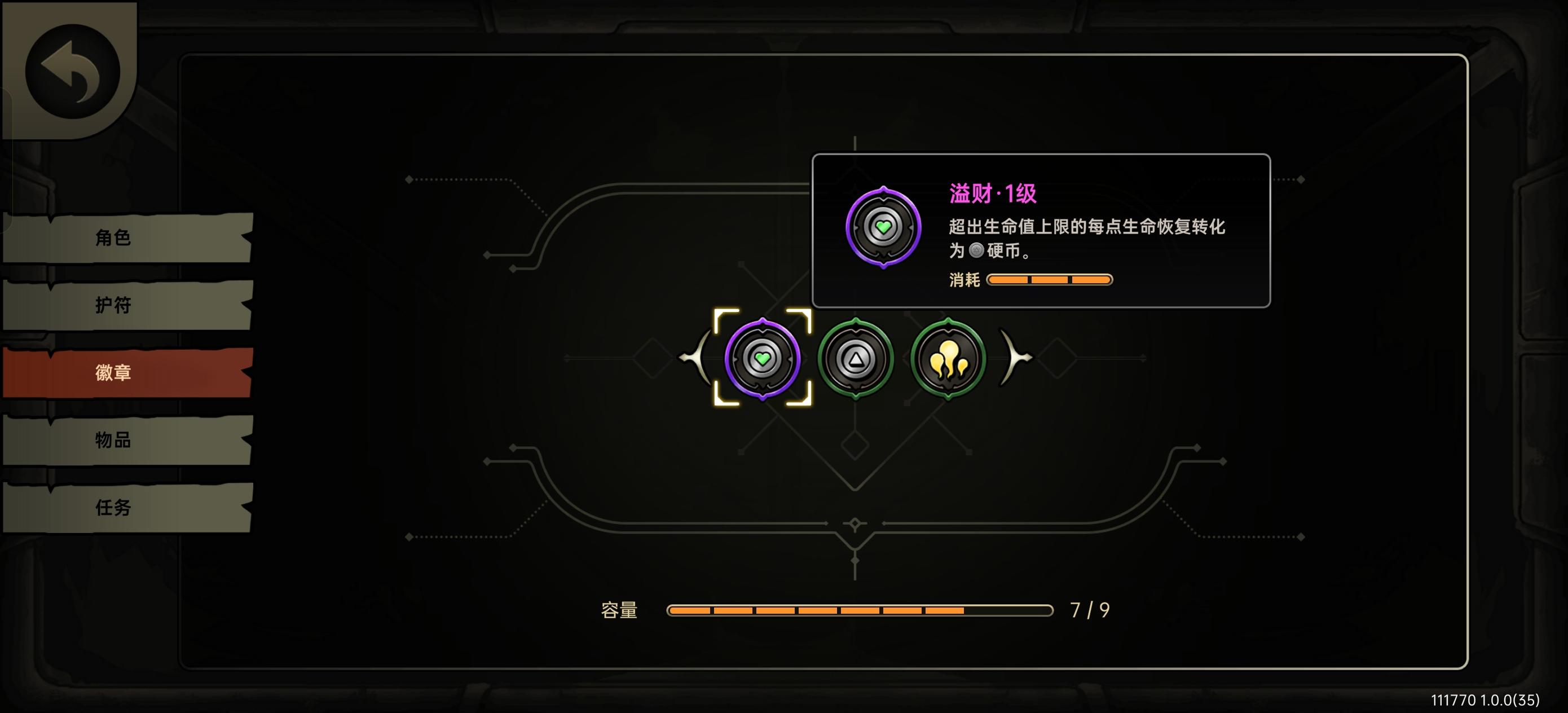 徽章溢财溢出恢复血量可以转为钱,树汁回血,回血量和血量上限和恢复值挂钩,只要属性够高,在商店就可以做到血量和银币的无限循环。大家有机会一定试试,百万撤离