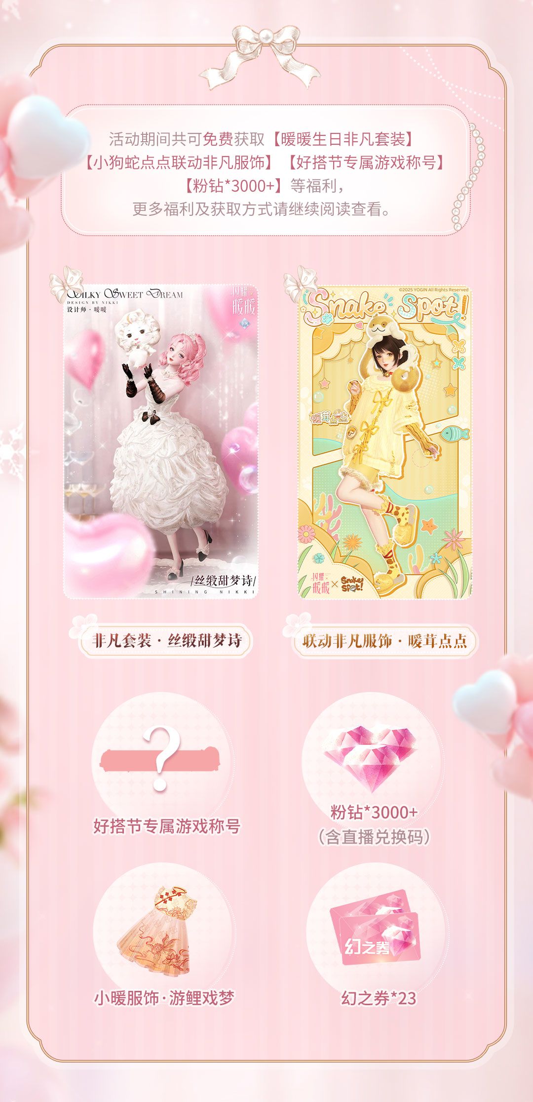 ▸ 好搭节专属游戏称号、粉钻*1460、拍照动作*2、闪耀服饰单品等海量福利!