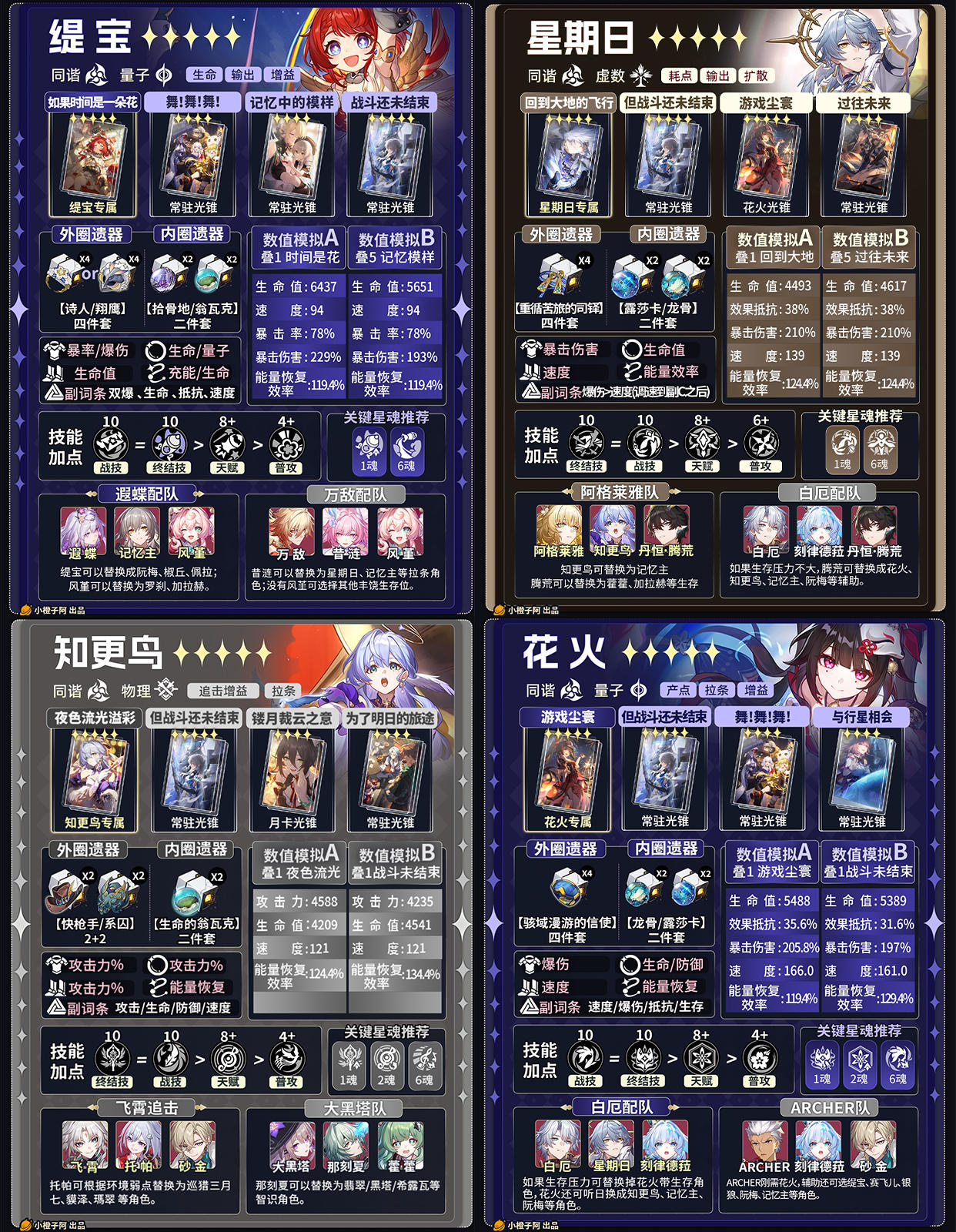 这一期是3.7版本五星角色一图流,各位小伙伴们也久等了!之后版本会以此篇为基底,根据版本更新内容、评论区反馈指正,进行翻新,及时带来最新的角色一图流攻略。(在此感谢评论区的各位大佬指正!)
