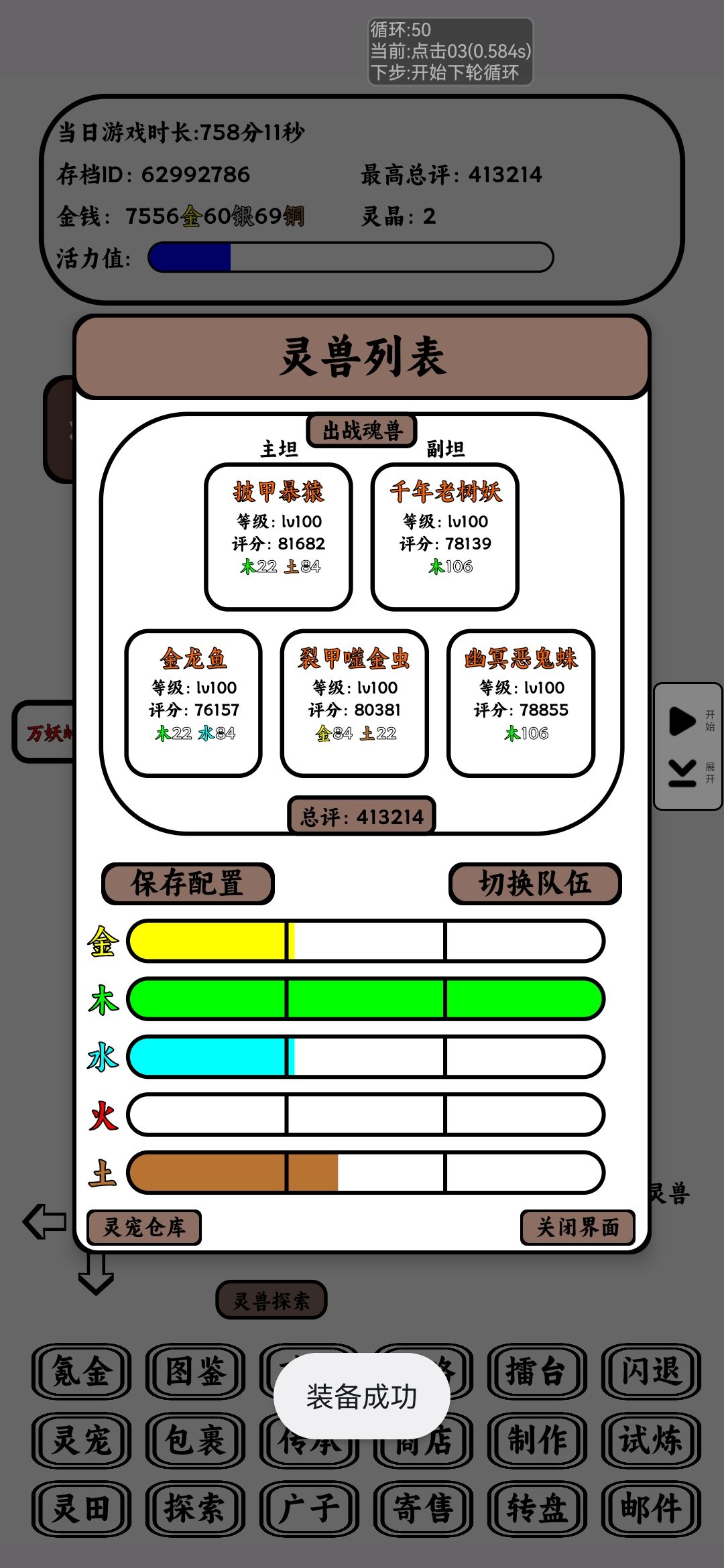 首先解释一下什么是四合一,其实就是传承,试炼,探索,竞技场四个主要场景较为通用且低配的阵容。接着说一下阵容主要的运转逻辑,金虫作为主C,它叠血量的同时能增加伤害,配合金系技能“拔矢啖睛”还能获得大量金属性攻击,是不折不扣的元攻输出手,所以整个阵容以它为核心展开。副C蜘蛛使用单体技能可以叠debuff的同时还能给敌方施加印记,增加其受到的元素伤害,觉醒大招施加的碎魂debuff也能降低敌人元素抗性,配合金虫一加一大于二。奶妈这里选择金鱼,其使用治疗技能时能给队友增加元攻基础值还有百分比,觉醒后更是能同时拉行动条,是相当契合阵容的奶妈。前排这里选择猴子和大树,猴子在提供全队减伤的同时还有着不俗的坦度,其觉醒技能炸盾还能打出30w真伤且必中,是相当不错的前排;而另一个前排大树则是为全体提供大量血量加成(大树的羁绊等级越高越好,这一点非常重要),提高整体队伍容错率的同时,还能给金虫狠狠拉高上限,其觉醒技能终末裁决也是能打出不俗伤害,还能破盾(但是有可能会被躲),也能补上一些输出。两个前排最最重要的是,造价都很低,使得整个阵容非常适合新手。