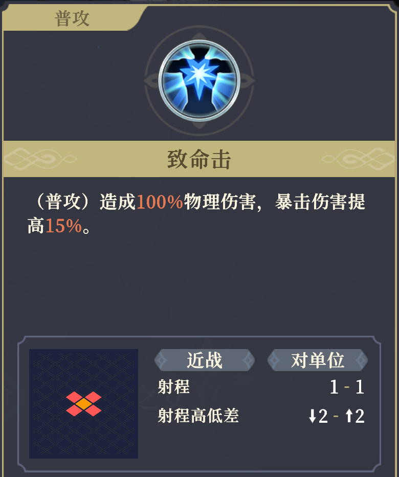 - 暴击率提高,攻击具有定身效果的敌人时则必暴,且伤害额外提高。