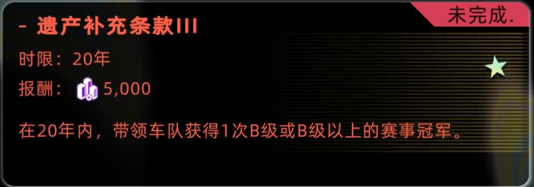 遗产补充条款III:限时20年,B级赛事车队三级开启。