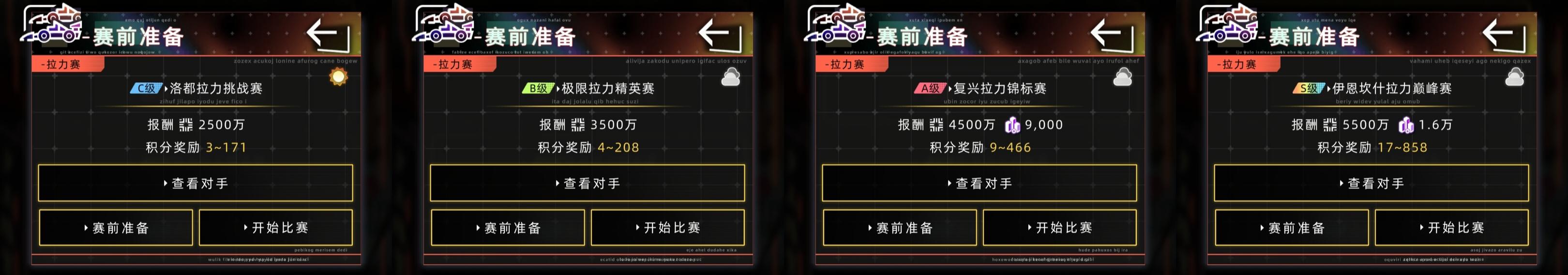 ③、车队三级,开启B级赛事,可以出售过渡车,转用SSS车比赛。