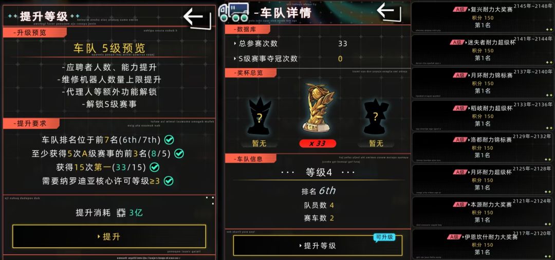 4️⃣、车队四级升五级,需完成A比赛(耐力赛)8次,大致需要1200积分(A赛事全第一)