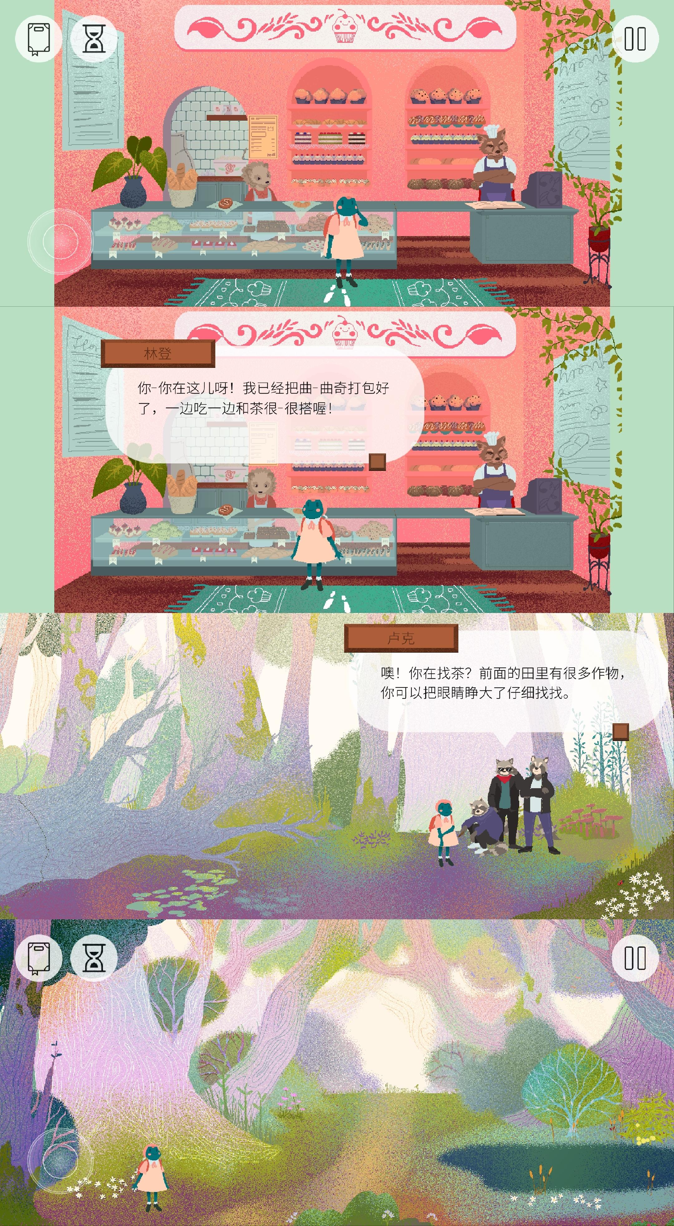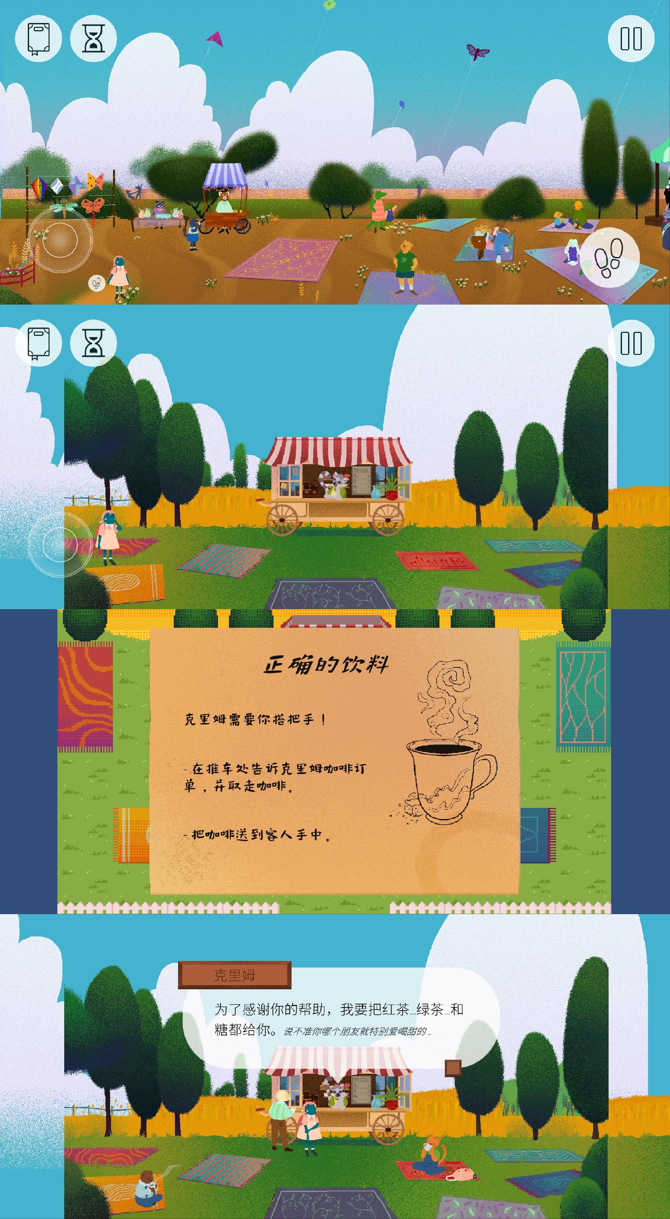 这是一个很温馨、很可爱、很有趣的游戏(Teacup)。讲的是小青蛙茶杯为即将到来的茶话会做准备,而出门寻找各类茶叶、点心等材料。在这一路上,小青蛙茶杯要穿过西部森林,到达集市、广场、池塘、草地、郊外、东部森林、田地,最后划船去奶奶家;分别要从萨拉曼多那得到薄荷,从奥托爷爷那得到蜂蜜,从韦提亚诺和拉科夫那得到魔法茶,从潘克拉蒂那得到茉莉花,从里卡德那得到博士茶,从林登那得到曲奇,从乔治娜那得到洛神花,在东部森林找到柠檬马鞭草,在集市找到洋甘菊,从克里姆那得到基本茶(红茶、绿茶、白茶、白糖),从奶奶那得到玫瑰果、姜、香蜂叶。