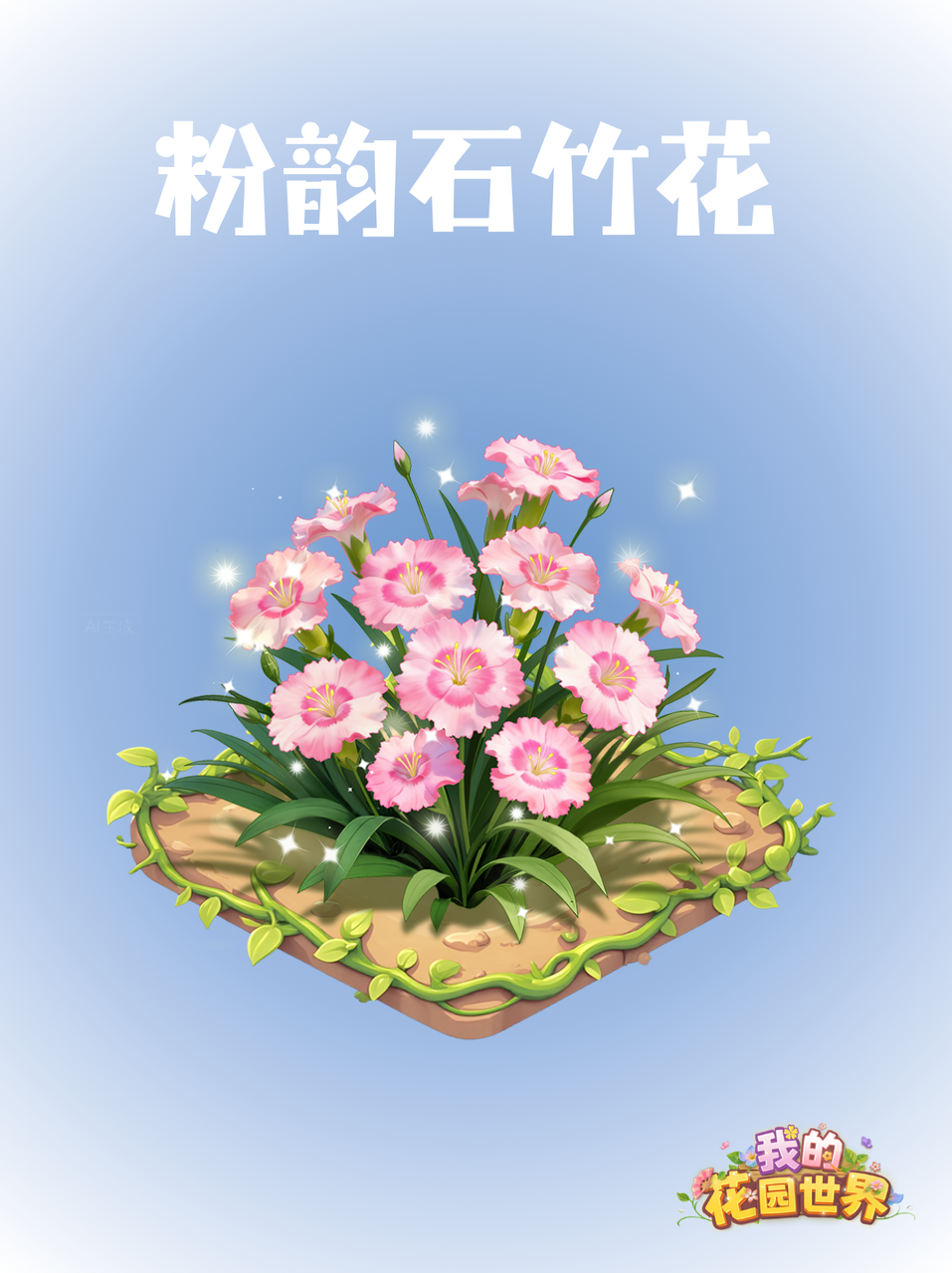 🌸粉韵石竹花:花朵晕染着柔雾粉调,花心点缀的黄色花蕊,似撒落的金箔,显得娇俏可爱~