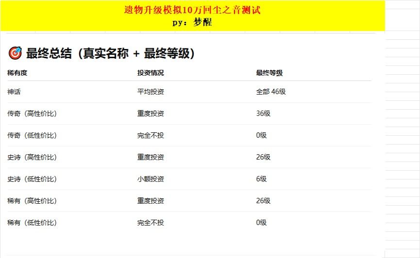 那么以上就是本次遗物升级