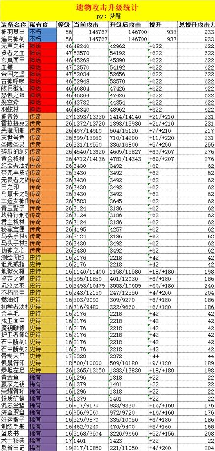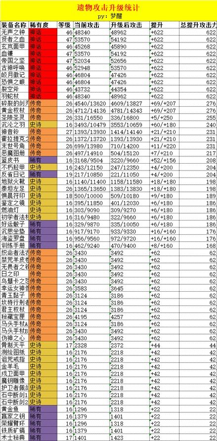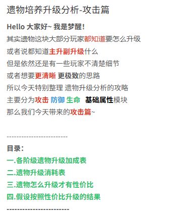 全网最详细之遗物培养升级分析-攻击篇