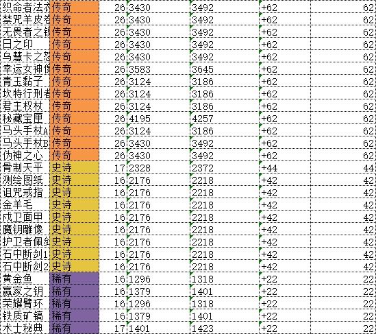 表格里面这些单次增加攻击62和42的