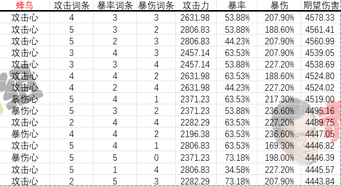 5.由于误差问题,故接近的词条配比之间的伤害高低并不固定,仅供参考。