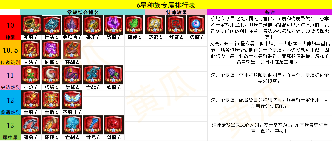 亡灵:最好有骨弓专属,没有就压制死骑的等级,因为死骑的血量占比很高,很容易让哥矛触发技能,召唤小兵切后排,导致翻车。最好是压在30级以内