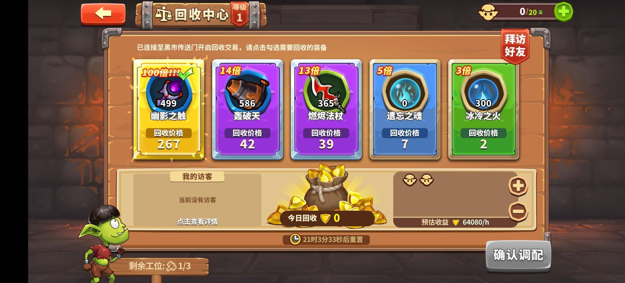 回收中心达到15级就可以修复,是将你的传送门里采集的资源做出来的装备以随机的价格兑换成魔晶的地方,是你日常魔晶的有力补充。但是前期基本用不到,因为在工人数量不多的情况下收益率太低。当拥有较多工人后始考虑卖装备赚魔晶,如果蹭上百倍,可以用时间沙漏造装备,然后拉满工人卖。补充一点,使用时间沙漏不会加快回收装备的速度。