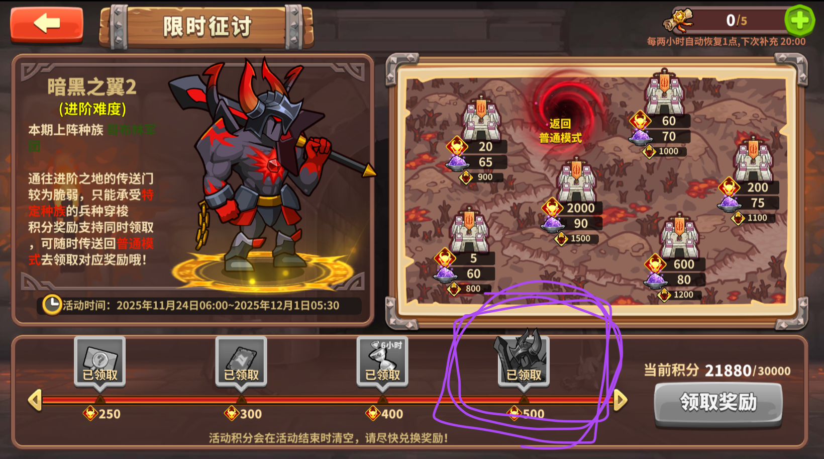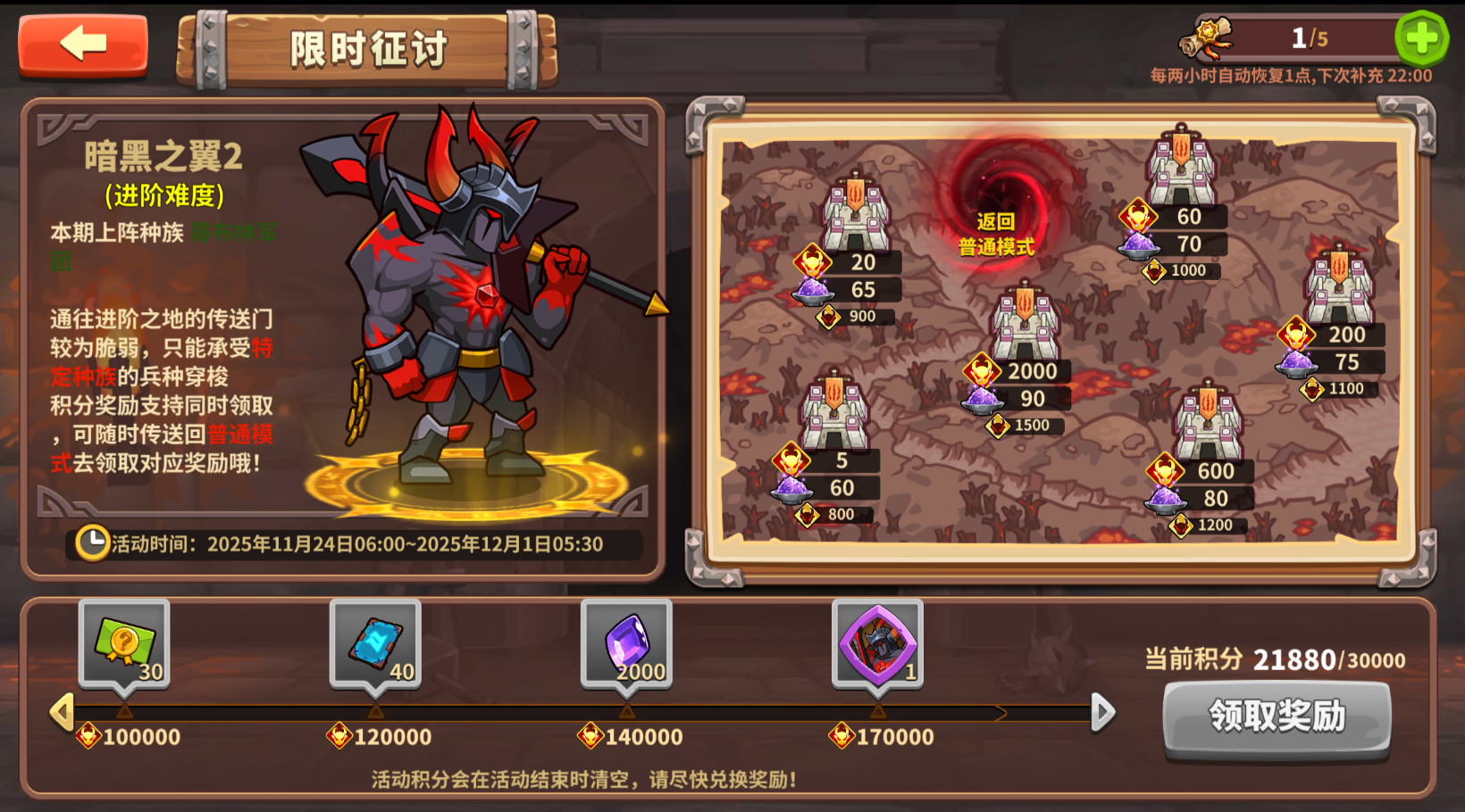 1、确定表格:点军情处看限时征讨是暗黑(哥布林进阶)/圣光(魔族进阶)/亡者(人族进阶)/血鬃(亡灵进阶)(按周轮换)中哪个