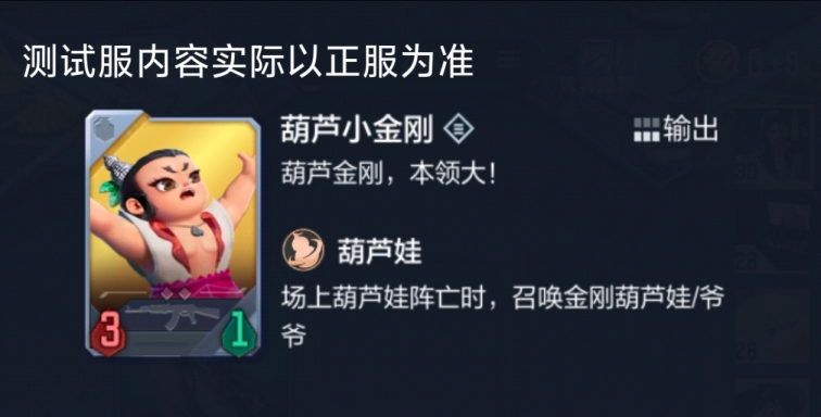 葫芦小金刚是王牌战士,当场上葫芦娃阵亡时,自动召唤葫芦小金刚,他能继承其余葫芦娃的属性,血量和输出成倍。