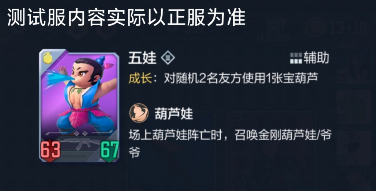 五娃是辅助战士,通过成长给1名友方用宝葫芦,二星后用2张,是“宝葫芦成型”的关键,能让输出卡快速吃满加成。