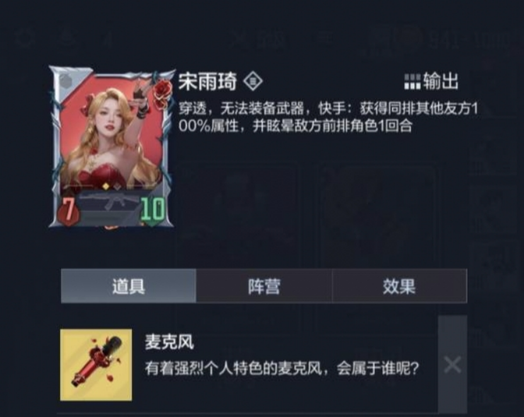 宋雨琦在悠悠牌玩法里,普通卡牌的“快手”技能是复制同排友方属性;装上麦克风解锁动态卡牌后,“快手”会眩晕敌方前排角色1回合。她和云悠悠同排,搭配云悠悠的“快手”,能多次触发眩晕。宋雨琦本身+云悠悠的联动,能让敌方频繁陷入眩晕状态,控场能力直接拉满,难怪被说“超标”,这套组合能把对面控到动不了。