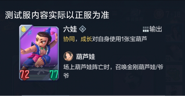 六娃是输出战士,协同+给自己用宝葫芦,二星后用2张,自给自足叠属性,单核C阵容的“隐形杀手”。