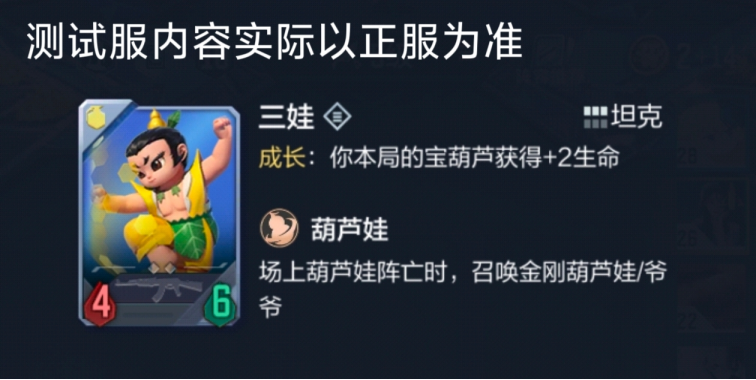 三娃是坦克战士,通过成长给宝葫芦+2生命,既能扛伤又能提升宝葫芦生存,是消耗流阵容的“铁壁后盾”。
