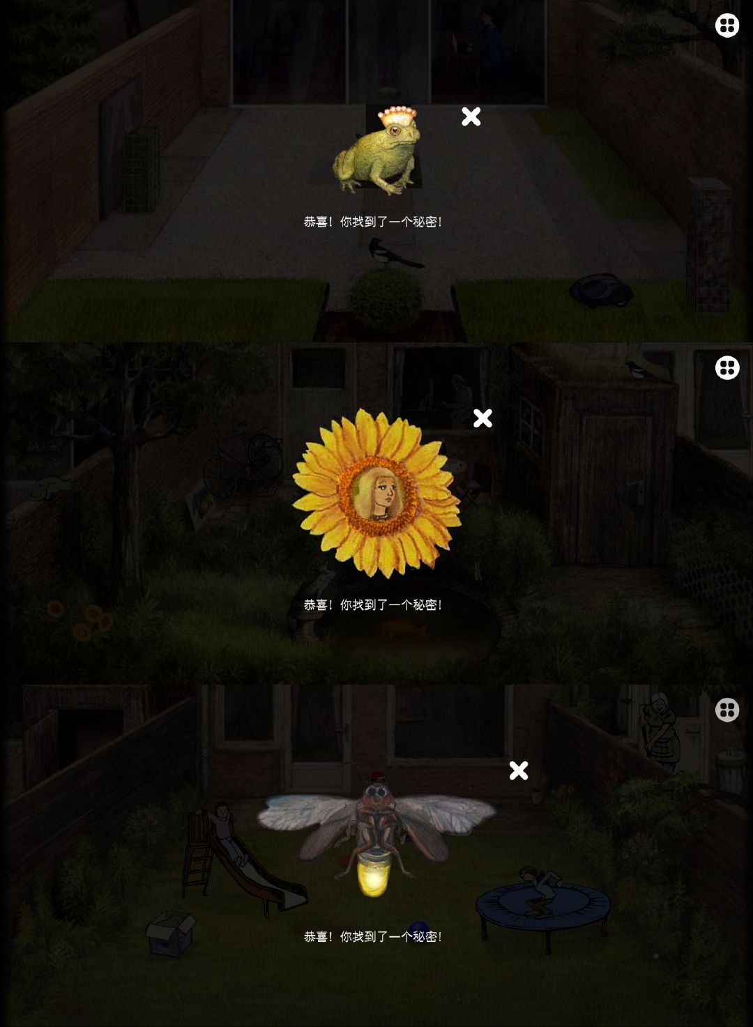 游戏是纯手绘画风,其中的场景、物品、动作等都呈现得独特且有趣;每一关都有着独特的背景音乐,非常契合故事剧情的发展。玩家要通过点击互动,帮助米洛去到下一家的院墙。这九关难度不大,但每关的“秘密”找起来有难度。