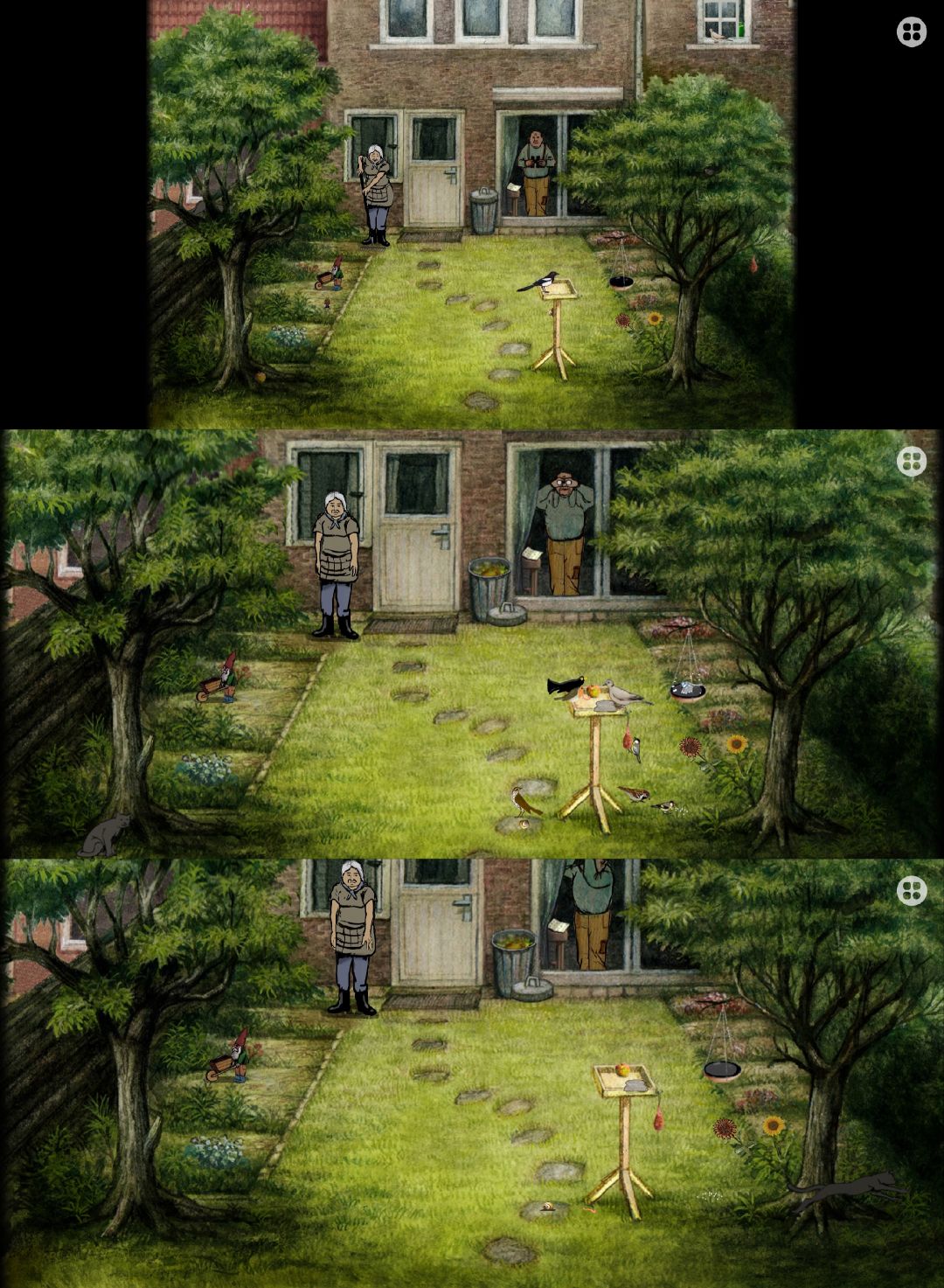 这个游戏还挺有趣的,是由锈湖旗下的Second Maze制作的。游戏共九关,主角是一只叫米洛的猫,它在回家路上遇到几只喜鹊,一直在挑衅、干扰它,不让它回家。米洛不得不想尽各种办法,摆脱喜鹊的视线,穿过多个住户的院子,最终与喜鹊在一棵大树上交锋。到最后才发现,原来喜鹊追赶米洛是为了保护幼崽不受伤害。双方对峙之时,一只更大的鸟向喜鹊及幼崽袭来。关键时刻,米洛挺身而出,抓住大鸟的翅膀,大鸟不堪重负,撒开米洛飞走。接着,被救的喜鹊将米洛送回了主人家。