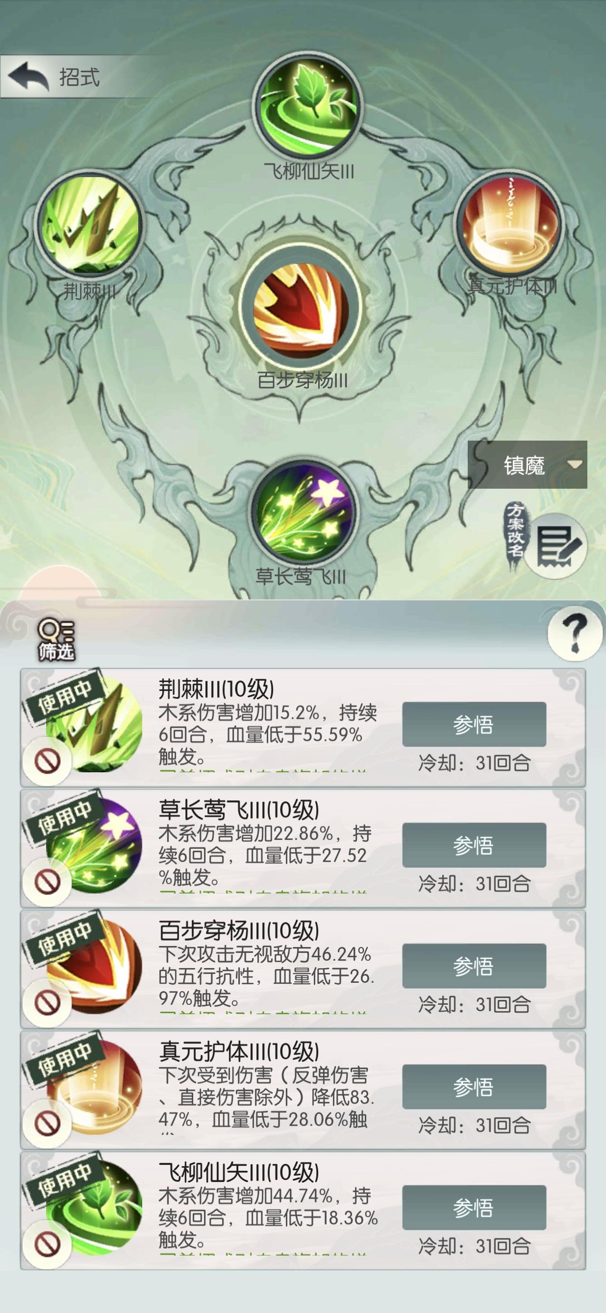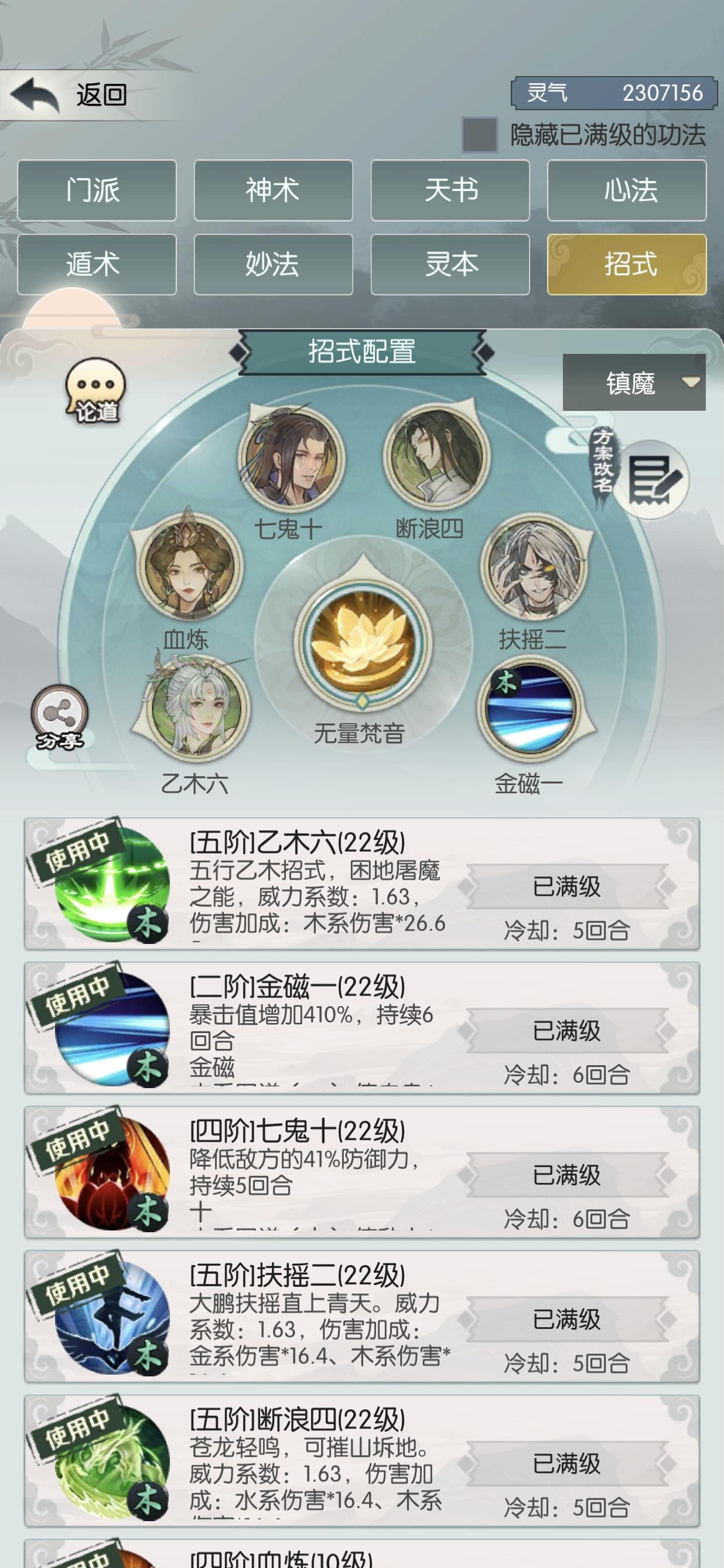 招式可调,七鬼可以换五鬼,buff类打上增伤图谱,输出类打上回复图谱。经测试3输出的成功率最高,4输出命中太低,不如给自己上buff。