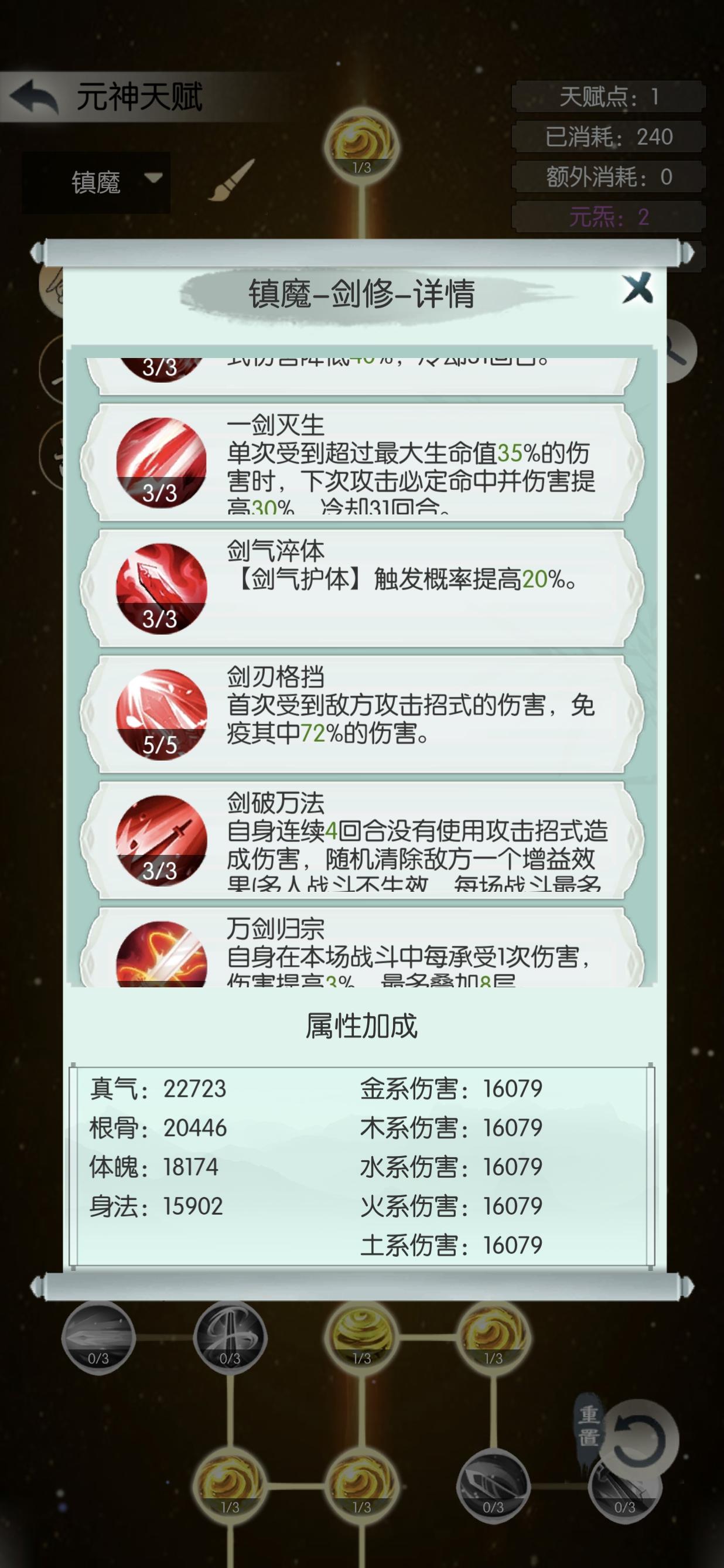 元神带剑转流云增加命中,一剑灭生保证我们在挨第二发之后,能够必中打满庇护词条19%上限且回满血