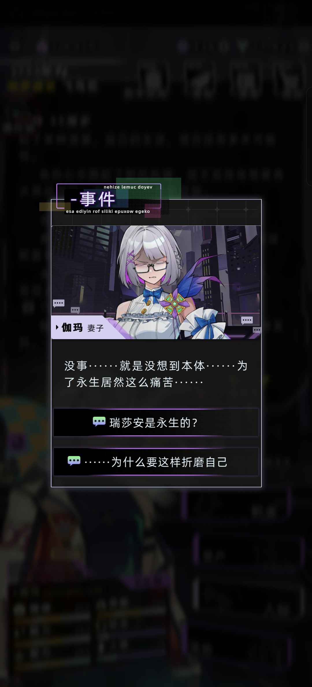 2.一些节点:初遇选择“这终端上是什么?(逼问)”-“或者...我可以帮你?”,成功交友;后续几年选择“邀请观影”、“前往探望”、“联系伽马”;弹相应橙字后可以追求成为恋人;发现真相,选择“未来的事情,谁也不知道”-“没有人了解自己”-“不用考虑这些”,之后选“...你开心就好”;战斗结束后(注意准备装备),选“你...觉得合身吗?”-“那么,你完全能取代她”,达成永生线分支,之后弹出相应橙字弹窗,可以求婚了。到纳罗迪亚后,选择“好吧,我理解你的做法”,“瑞莎安是永生的?”-“你只是在做你自己”,这个事件结束后,伽玛的社交页面会出现和瑞莎安相同的“劣化基因”血脉,同样不可遗传。