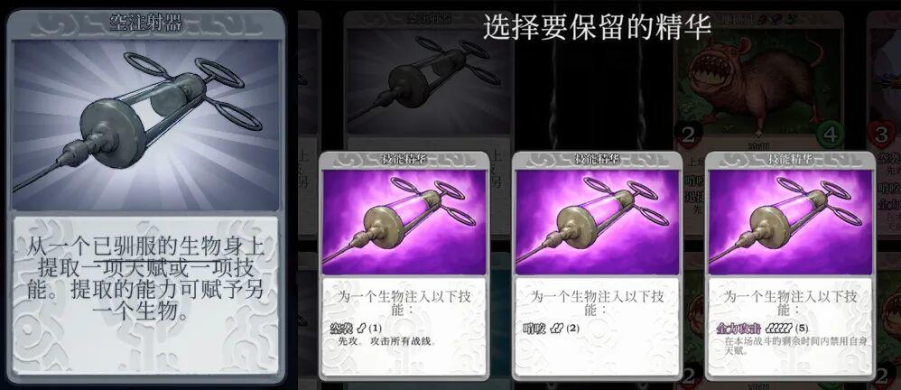 而在《驯牌师》中,虽然这套底层逻辑依旧成立,但外在表现却完全变了。你不但要靠怪物卡打输出,还得临场把对面的怪“抓”到自己队伍里,靠一个又一个临时抱来的大腿渡过难关,再用针管把各种技能抽来抽去,试图拼出一个能撑到终盘的弗兰肯斯坦。